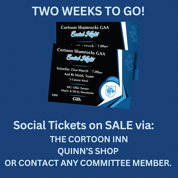 Tickets to sign up to a yearly lotto subscription are also available in The Cortoon Inn & Quinn’s Shop, Tuam. If you haven't had a chance to sign up to the clubs lotto please do. It's an important part of keeping the club running.
