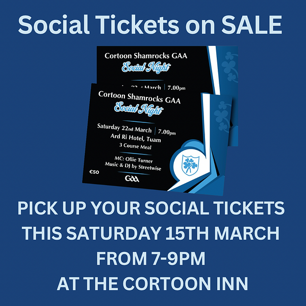 Tickets on Sale this Saturday the 15th of March at The Cortoon Inn between 7-9pm!
