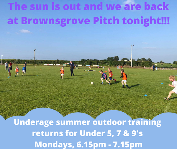 Cortoon Shamrocks Under 5/Under 7 and Under 9 are back in Brownesgrove Pitch this evening 28th March at 6:15 pm sharp. (Note the earlier time than last year)