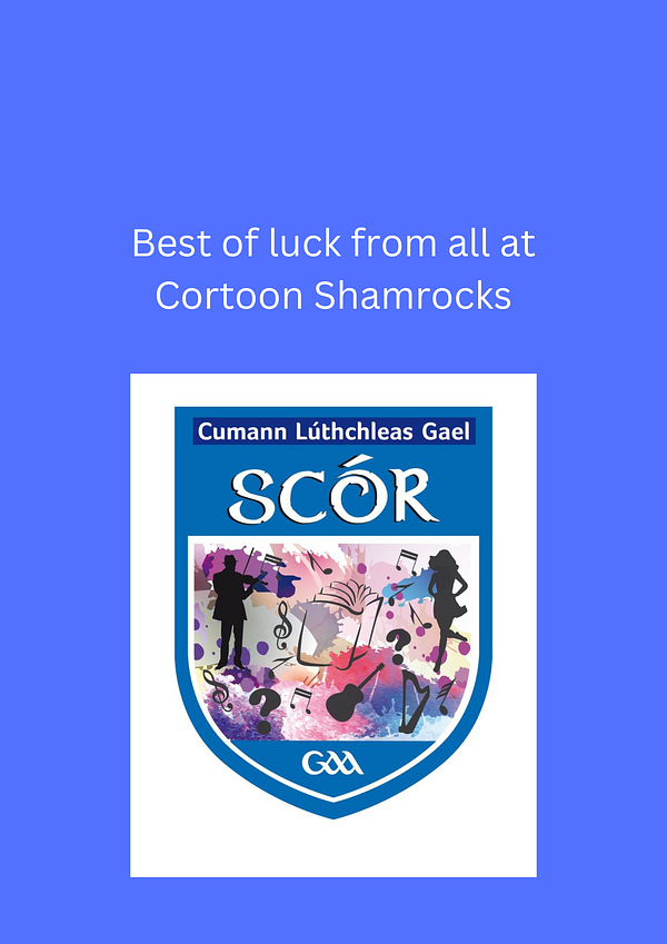 Cortoon Shamrocks would like to wish the best luck to the following representing the club today in Scor na nóg in Athenry.
